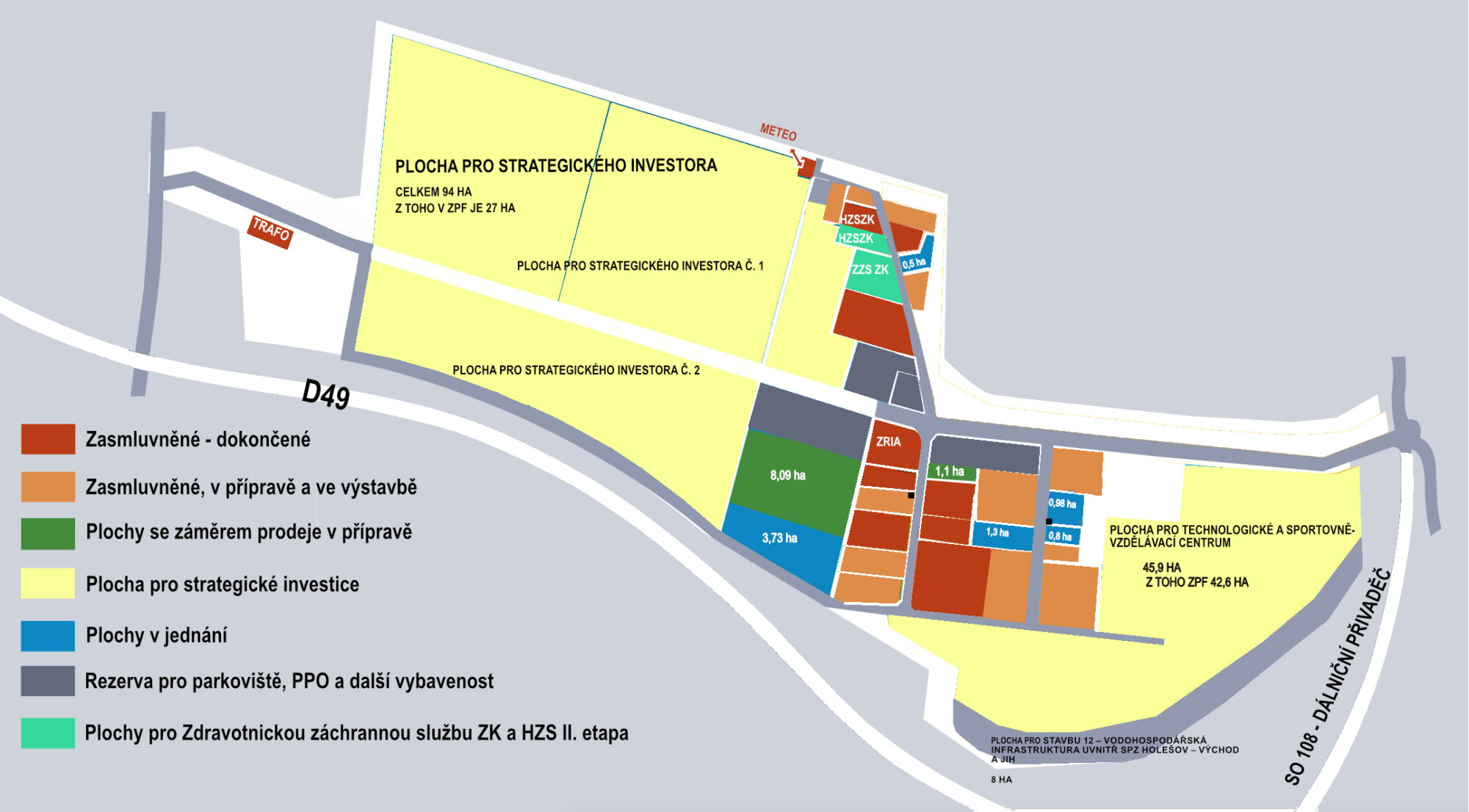 Aktuálně jsou pro střední a drobné záměry připraveny plochy v centrální a jihovýchodní části zóny. Pozemky jsou nabízeny v ceně obvyklé dle znaleckého posudku.